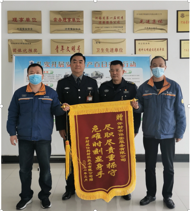 當前,公司正在組織開展安全生產百日競賽活動,保安部認真貫徹活動精神,提高保安員安全服務意識。2021年3月19日,早七點,我公司保安二部駐威士科夜班班長盧國文、隊員葉戰(zhàn)法、張愛民正在進行交接班,此時一名隊員從監(jiān)控畫面里看到在廠*西頭的職工電動車停車場方向有異常,冒黑煙,值班隊員立即提上滅火器趕到現場,發(fā)現有一輛電動車自燃,隊員先后用8個滅火器才將自燃的電動車撲滅。隊員的快速反應控制了火勢進一步擴大,周邊還存放幾十輛電動車,如不及時搶險,后果不堪設想。隊員在平凡的崗位中盡職盡責,挽回了客戶單位經濟損失約貳萬余元。甲方領導對保安員快速反應,盡職盡責的工作作風給予了高度的評價。威士科領導專程到公司送錦旗一面,并獎勵當班隊員每人叁佰元的獎勵金。